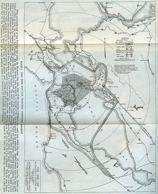 1913 Transit Time Isochron Map for the Peninsula and East Bay | 511 CCTA