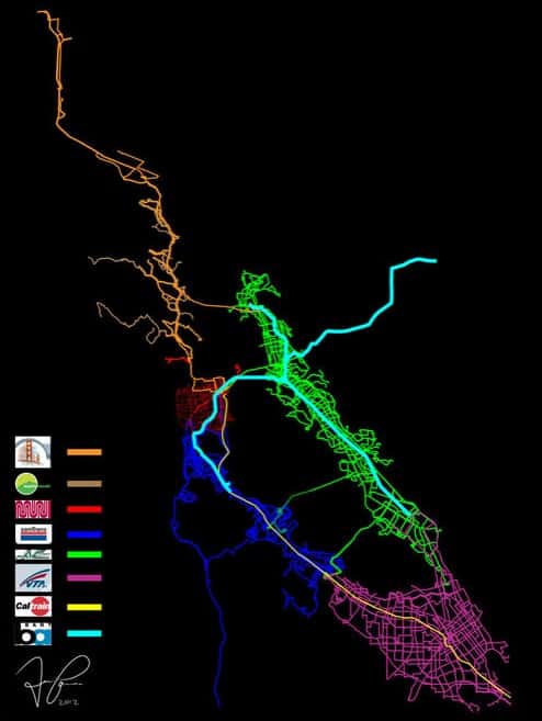 The Bay Area, through public transit lines. Image credit: DylanofTilden