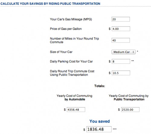 Have you done the math for your household commute costs? Try this transit savings calculator from the American Public Transportation Association: