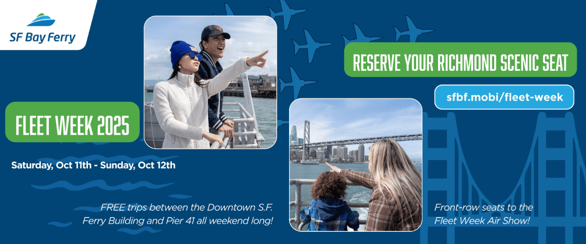 If you’re headed to San Francsico this weekend, especially if you’ll be checking out Fleet Week festivities, it’s a great time to leave your car behind and take transit. AC Transbay, BART, and the San Francisco Bay Ferry Richmond Line are all great ways to get to San Francsico. Best of all, parking at all East Bay BART stations and the Richmond Ferry terminal is free all weekend long.