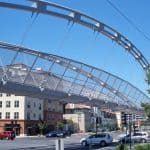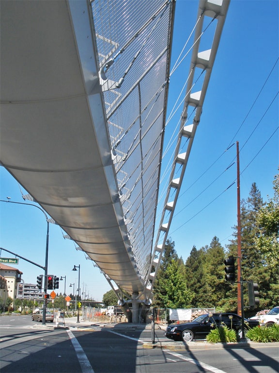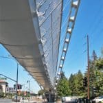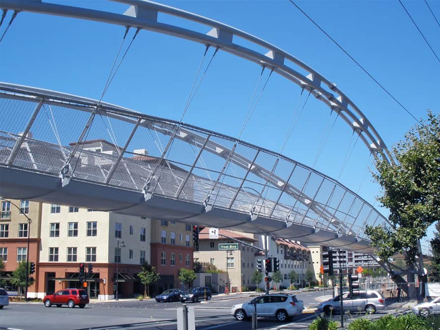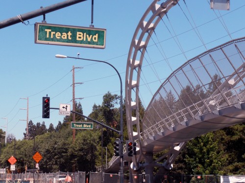After months of construction and more than a decade of planning, the Iron Horse Trail Pedestrian/Bike Bridge is near completion. The bridge spans eight lanes of Treat Boulevard in the Pleasant Hill BART area, linking discontinuous sections of the Iron Horse Trail. Upon its opening (rumored to be Friday, August 27th), the overcrossing will allow for pedestrians and bicyclists to safely cross the heavily trafficked road.