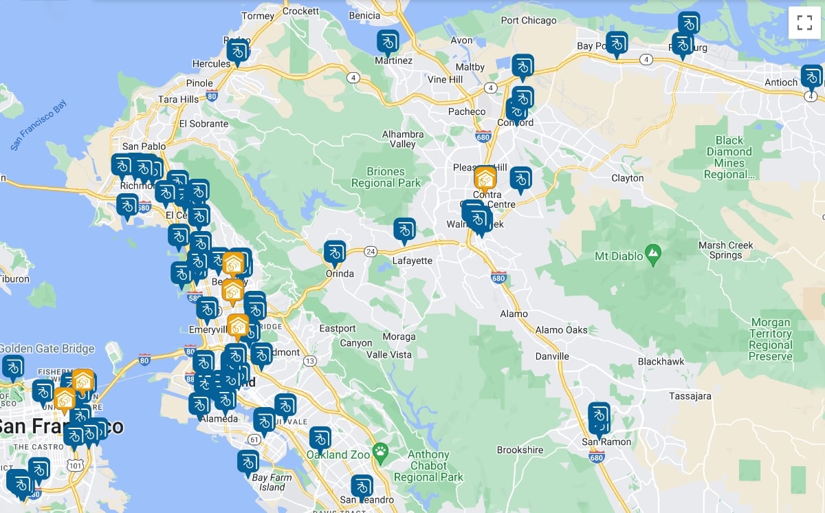 For areas which see a large amount of commuter traffic, there are even indoor group parking locations called “bike stations” which offer 24-hour controlled BikeLink access. Bike stations are located in or close to BART stations, and Contra Costa has one at Pleasant Hill BART station. There are also two in San Francisco, at Embarcadero and Civic Center BART stations.