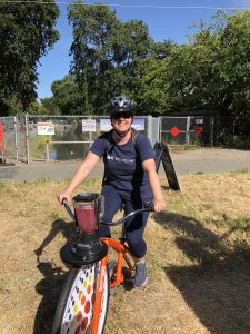 For Isabella, biking is more than just transportation, it provides a link to her community and its history. These days she rides the Richmond Greenway, but she used to live by it before it was green. “It was just dirt and rocks, and now it has been transformed. I love the connections it provides. The edible garden, the murals, it is so cool to see everything come to life and be open to the whole community.” During rides around Richmond, she also builds connections with her neighbors and strengthens friendships with other riders.