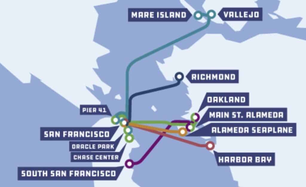 The San Francisco Bay Ferry is a waterway public transit system that connects Richmond, Vallejo, Alameda and Oakland to San Francisco. It also offers service to South San Francisco and special event service to Oracle Park (SF Giants) and Chase Center (Warriors).