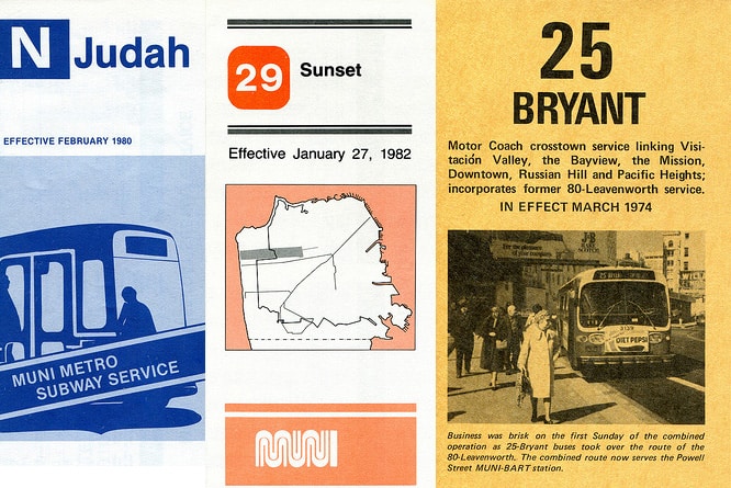 Muni’s fleet consists of about 1,000 vehicles, over half of which are electric, subway-surface light-rail vehicles, electric trolley buses, diesel buses, and the world-famous cable cars (the only ones in the world still operating!) Check out these vintage MUNI schedules:
